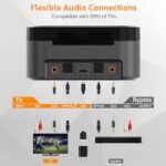 Share Your Fun: The transmitter base features soundbar pass-through functionality, allowing friends or family to watch next to you without worrying about volume levels. The pass-through feature allows you to listen through your headphones at the volume you want, while others listen through an external soundbar. It's a win-win!