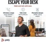 LONG-LIFE BATTERY: Stay productive with up to 24-hours of wireless talk time on a single charge; plus, extend your Bluetooth headset’s talk time even further by using as a wired headset with audio over USB cable mode. Simplify charging with a desktop charging stand.